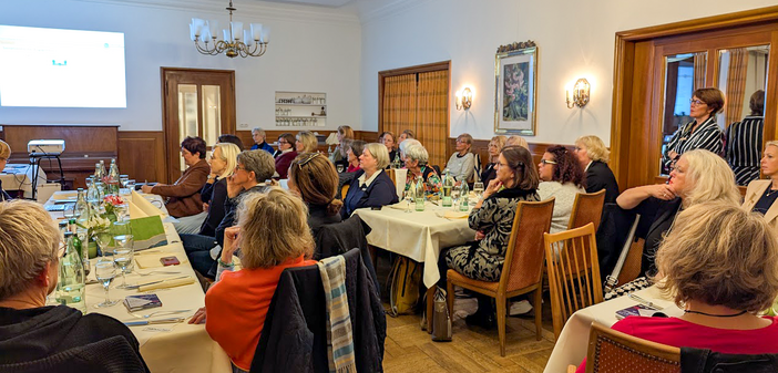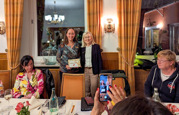 Gestern Abend durften wir einen ganz besonderen Clubabend erleben. Unsere Clubschwestern aus Friedrichshafen, Ravensburg und Konstanz besuchten uns im Ochsen in Überlingen. Anlass war der Besuch unserer amtierenden Präsidentin von SI Deutschland, Manuela Nitsche, über den wir uns sehr gefreut haben. Ihr Vortrag war ausgesprochen eindrucksvoll und motivierend: Sie schilderte anschaulich ihre Arbeit als SID Präsidentin, zeigte Wege auf, wie Frauen sich stärker mit der Digitalisierung auseinandersetzen sollten, und appellierte eindringlich daran, nicht abzuwarten, sondern proaktiv die Chancen der digitalen Transformation zu nutzen, um nicht abgehängt zu werden.
